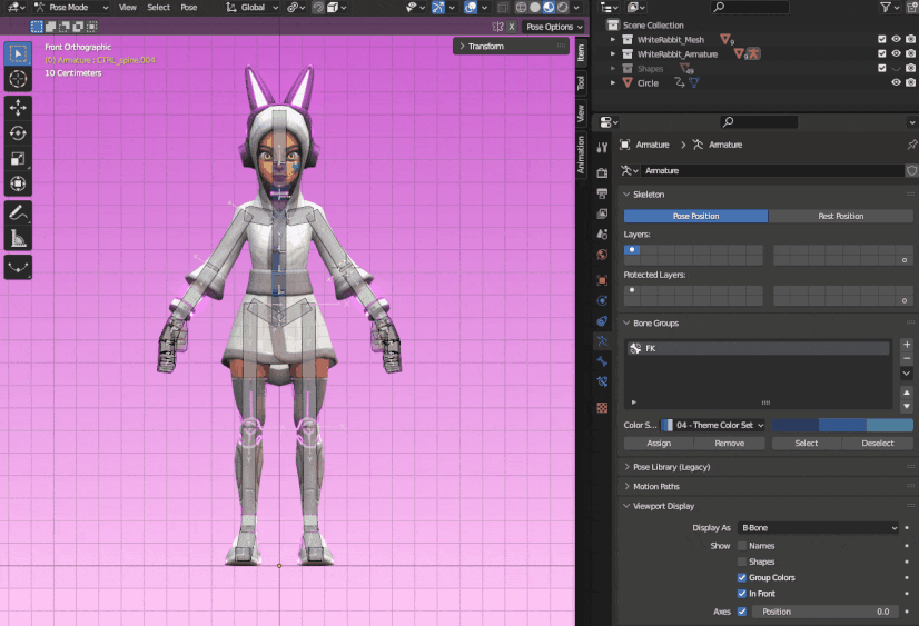 An extra way to improve your rig is to customize the shape of the bones. To do that, go to Object Mode, press Shift+A to ad a mesh, like a circle, for example. To keep everything organized, create a collection for your shapes and move there the circle you just created. Go back to Pose Mode and, in Object Data Properties > Viewport Display check Shapes. Select the bone you want and then, in Bone Properties, click on Viewport Display > Custom Shape. In Custom object, select the circle in the outliner.