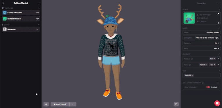 When this property is enabled, it will allow owners of your item to include it in VRM Avatar Exports so they can show it off outside of Decentraland.